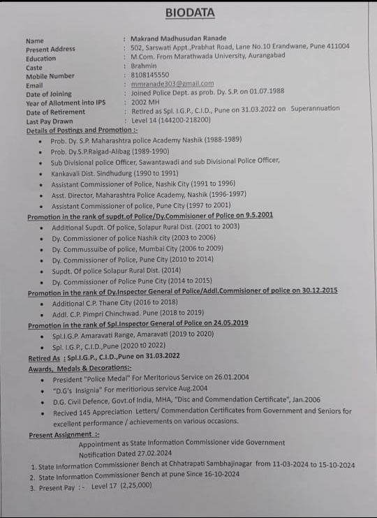 मुख्य माहिती आयुक्त cic.mumbai@maharashtra.gov.in